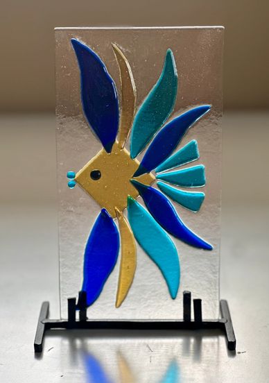 Make this pretty angel fish your own by using whatever colors you like. The cutting requires some experience. Chain and hook can be added for an additional $5. Stand is $10